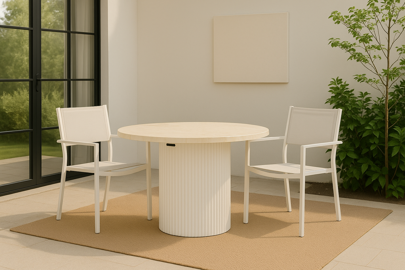 Med sin generösa storlek är bordet perfekt för sociala stunder utomhus, oavsett om det handlar om middagar i kvällssolen eller en lugn fika under dagen. Den hållbara ytan är anpassad för utomhusbruk, men för att bibehålla dess eleganta finish rekommenderas att skydda bordet vid kraftigt regn och vinterförvara det vid behov.